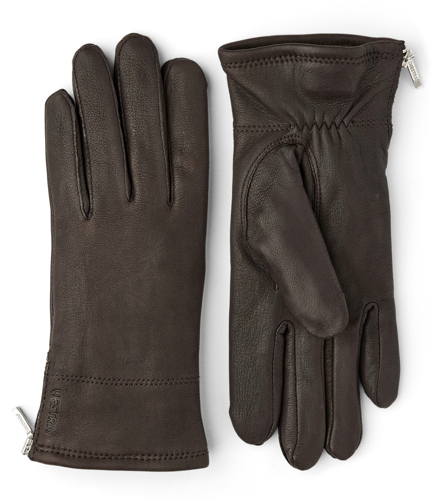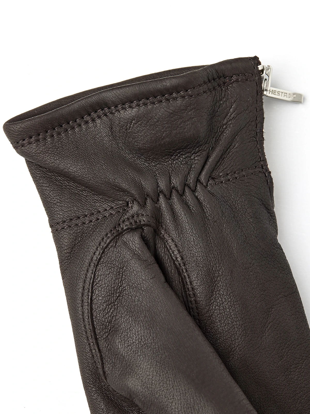 Warm glove entirely of natural materials with a zipper on the side.