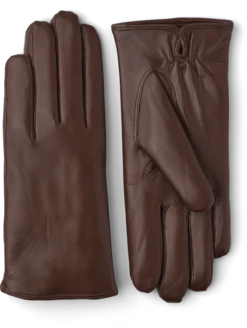 A short glove with a streamlined silhouette, sewn in Italian hairsheep leather with a beautiful sheen. The glove is cut by hand in Hestra’s workshop in Hungary and the high-quality materials and craftsmanship, with piqué seams on the backhand and palm, produce an amazingly supple glove with a superb fit. It fits closely with elastic at the wrist and a slit at inside wrist. A knitted cashmere lining is comforting and warming on chilly autumn and winter days.
