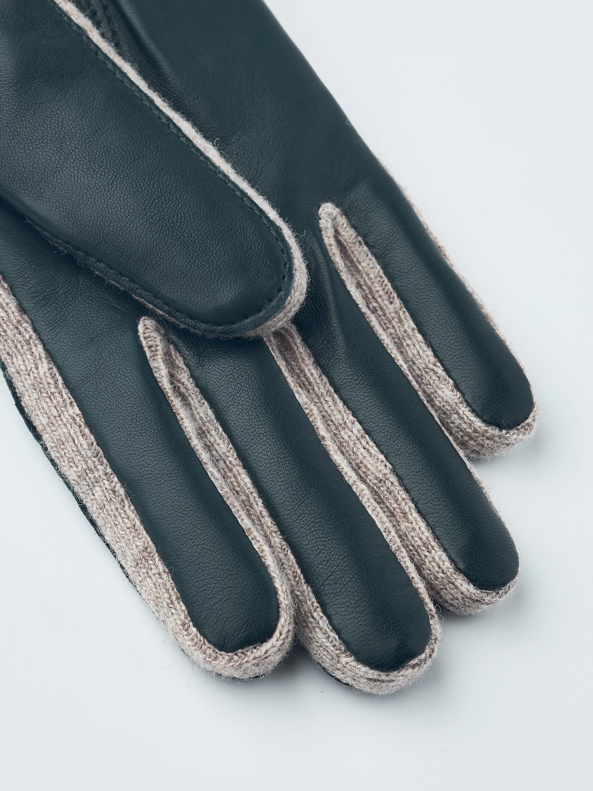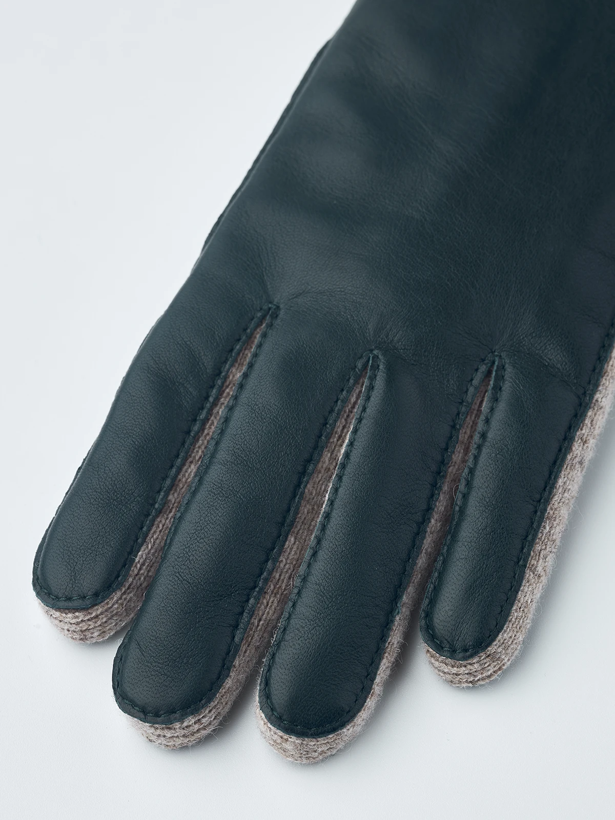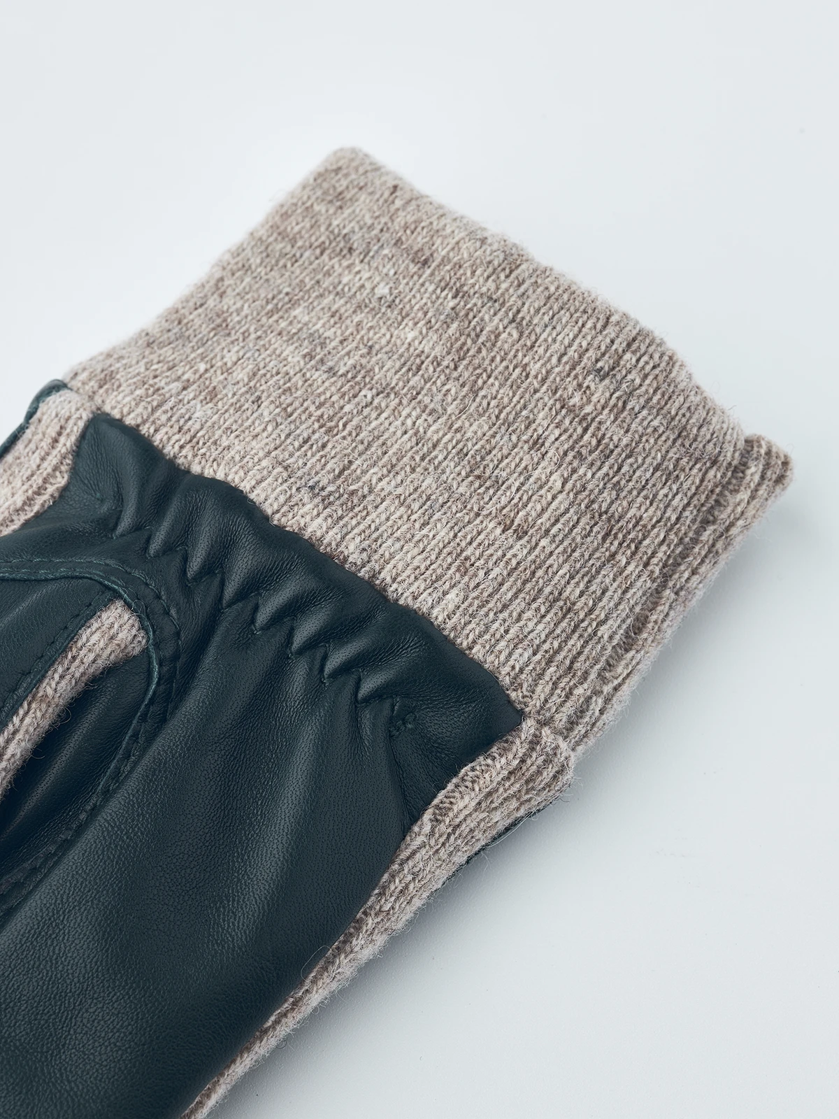 A sporty, comfortable fashion glove that combines wool and the finest lamb nappa. A beautiful, warming glove for autumn and milder winter days. The main material is rib-knitted wool jersey, while the backhand and palm are in Italian lamb nappa, a leather with incredible softness and sheen. It features half piqué seams around the fingers and a ribbed cuff.