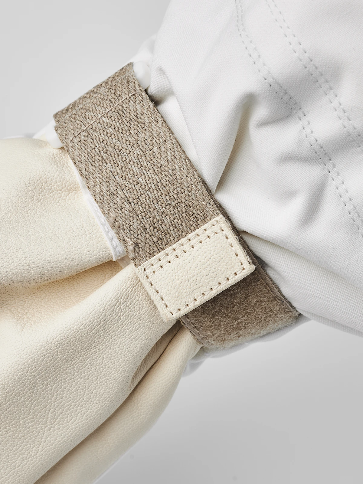 One of Hestra’s most iconic alpine designs – here in an extra warming mitten version with completely reworked “ingredients” for minimal environmental impact. Recycled polyamide joins forces with chrome-free, undyed goatskin, details in recycled plastic and a removable wool liner. As always, this glove is warm and practical for long days outdoors in the snow and cold.