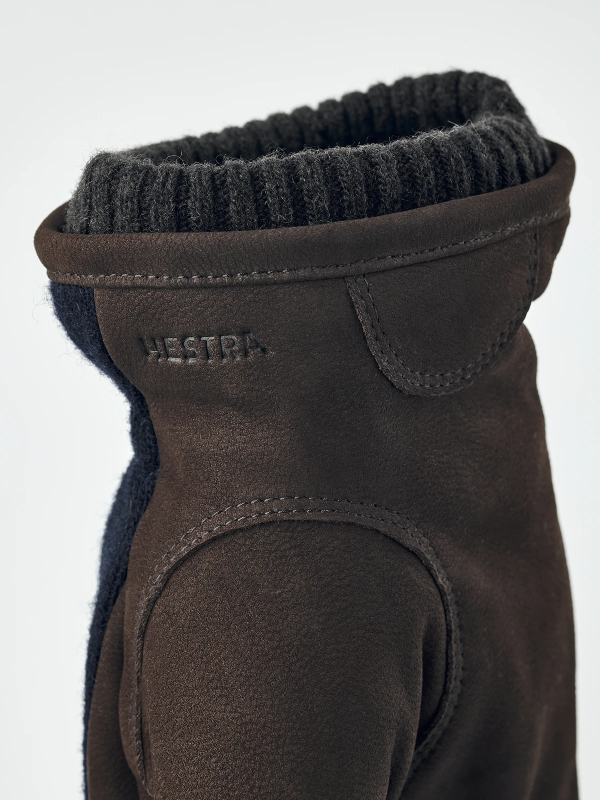 A timeless leather glove in sturdy nubuck leather, with a backhand in wool jersey. An attractive, warming everyday glove for men, with a relaxed style that works just as well for commuting to the office or exploring nature. A soft fleece lining with Primaloft Gold synthetic insulation keeps the hands warm in chilly winter weather. The wrist is relatively short, with an elasticated backhand and a ribbed cuff that gently encloses the wrist.