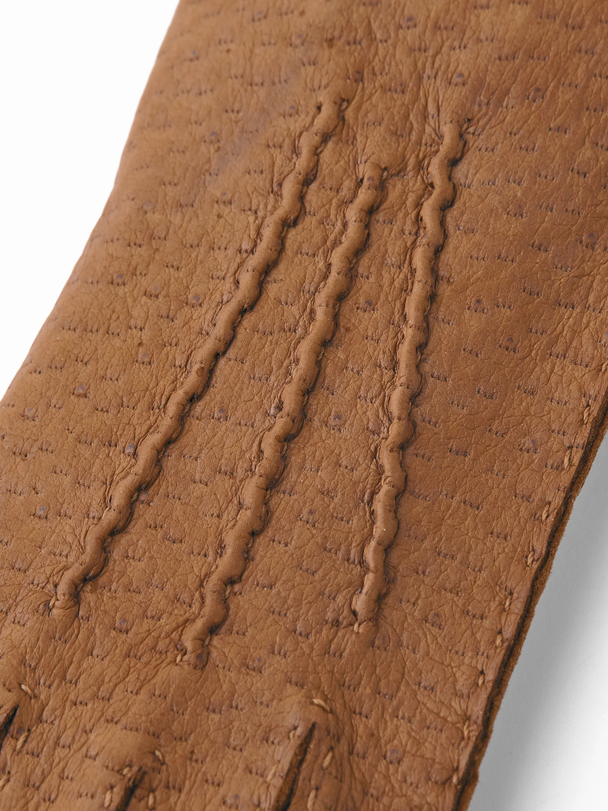 A timeless women’s glove with a streamlined silhouette in exclusive peccary leather. Cut by hand in Hestra’s glove cutting workshop in Budapest, this design is unlined for use in different weathers, but works best for spring and early autumn wear.