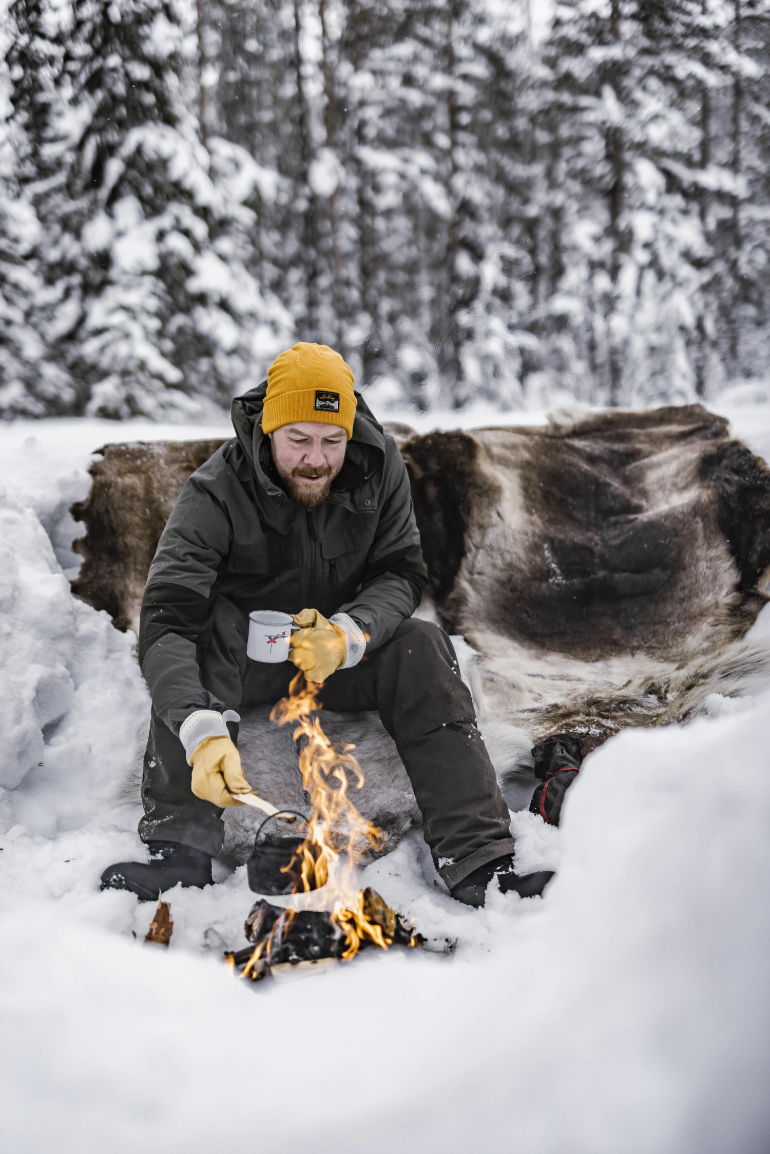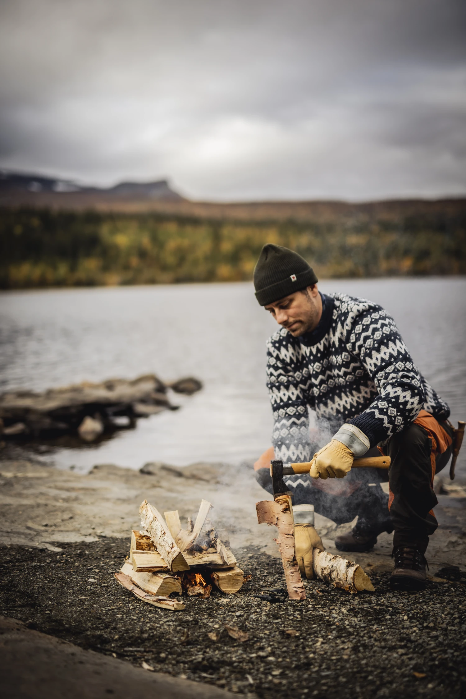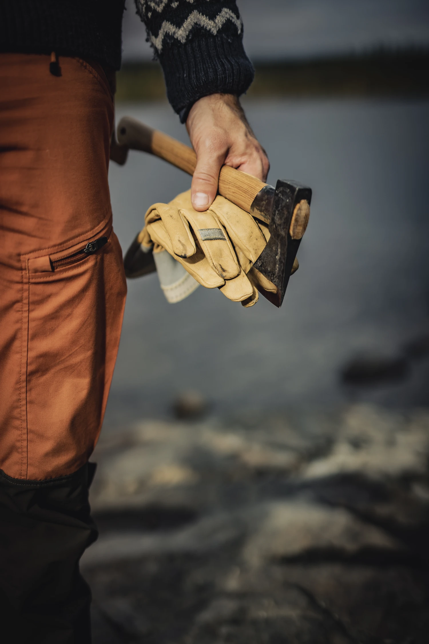 A hardwearing unlined 5-finger glove in goatskin leather, developed in partnership with outdoor expert Johan Skullman. A hardwearing, versatile work glove for the outdoors, protecting and providing good grip when chopping wood, setting up camp and lugging things around base camp, fishing camps or hunting lodges. The long cuff makes it easy to put on and take off.